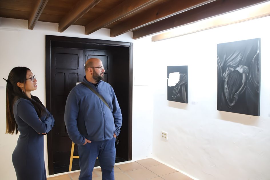 Lucía Rodríguez despliega su arte en tres salas de la Casa de la Cultura. En la más pequeña y acogedora se encuentra ‘Ecos de la metamorfosis’, una serie de cuadros de estilo intimista con predominio del negro, donde la artista narra la transformación de una mujer en su viaje de autodescubrimiento y fortaleza interior. Entre sus obras más representativas se encuentran ‘Refugio de valentía’, ‘Rostro oculto’, ‘Resiliencia en la sombra’ y ‘Ascenso’.