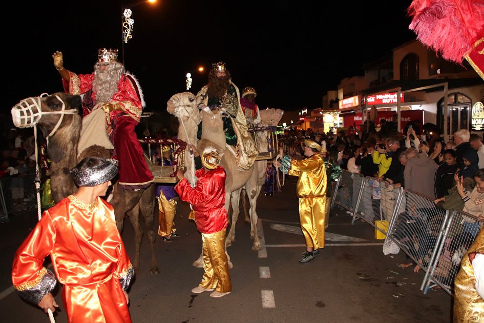 Melchor, Gaspar y Baltasar se dieron un auténtico baño de multitudes este lunes 5 de enero en las localidades de Yaiza, al atardecer, y en Playa Blanca, ya entrada las primeras horas de la noche, y es que como pocos personajes, los Reyes Magos de Oriente, no solo consiguen aglutinar a personas de todas las nacionalidades y culturas, sino que provocan la euforia, casi que por igual, entre peques, jóvenes y adultos.